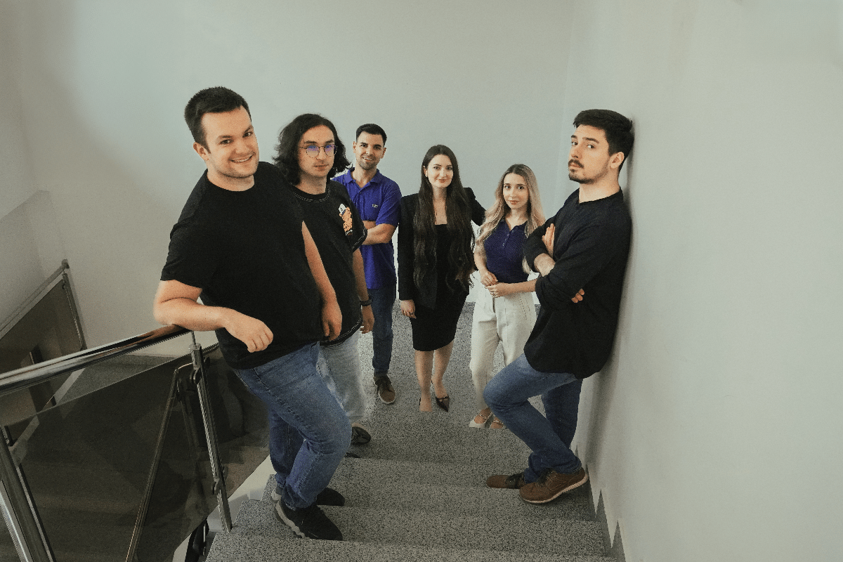 From left to right: Co-founders Alexandru-Ioan Voda and Alexandru Bacita; Adrian Grosu (Advisor), Cristina Alexandru (Scientist), Sonia Arrison (Advisor), Mihai Tanase (Advisor).
