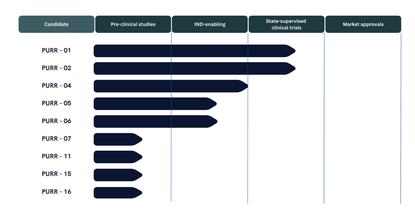 Right now PURR-1 is in the clinical stage. We recruited cats in April–May 2025, and by the end of May we already saw positive interim results; some cats were gaining weight. We’re expanding the cohort and doing imaging and biomarker analysis to see if the gains are truly muscle mass.